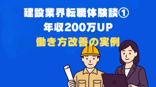 建設業界転職の体験談・実例集 🏙️建設業界転職体験談① 年収200万UP‼️働き方改善の実例☝️ 建設業界での転職成功体験談を実例で紹介。年収200万円アップ、残業時間50%削減、週休2日制実現など、実際の転職者が語るリアルな体験談。転職のきっかけ、企業選び、面接対策、入社後の変化まで詳しく解説。中小から大手への転職、未経験からの転職など複数パターンを紹介。 2025.09.12 建設業界転職の体験談・実例集