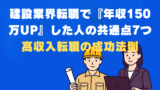 「営業から建設業界への転職は不安でしたが、事前に2級施工管理技士を取得し、 業界特化の転職エージェントを利用したことで、希望以上の条件で転職できました。 今では年収も100万円アップし、毎日充実して働いています。」