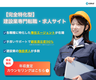 🎯 建設業界への転職を本格検討される方は、建設業界特化の転職サイトをご活用ください。 業界専門のキャリアアドバイザーが、あなたの経歴に最適なキャリアパスと求人をご提案します。