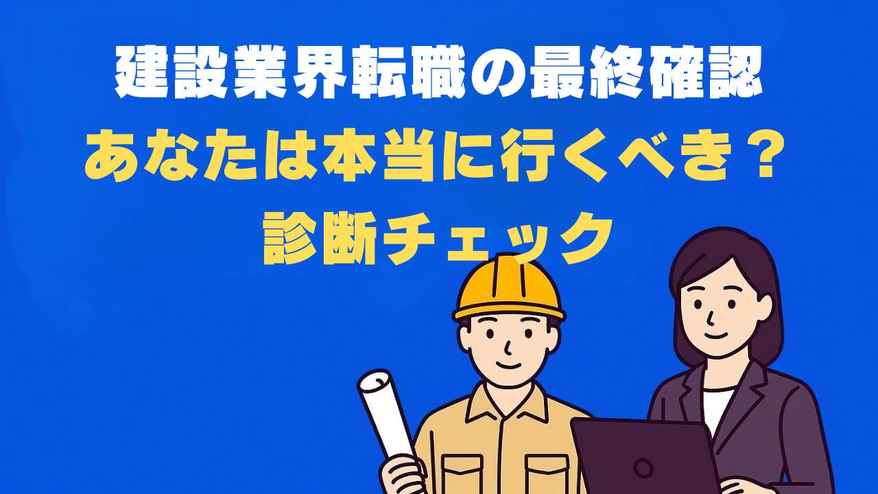 「建設業界への転職、本当にこの決断で大丈夫だろうか?」そんな最後の迷いを抱えているあなたへ。転職は人生の重大な決断です。**一度踏み出したら簡単には戻れません**。この記事は、あなたが建設業界に向いているのか、それとも別の道を選ぶべきなのかを**科学的に診断する最後の砦**です。20項目の診断チェックで、後悔のない決断をサポートします。🎯✨