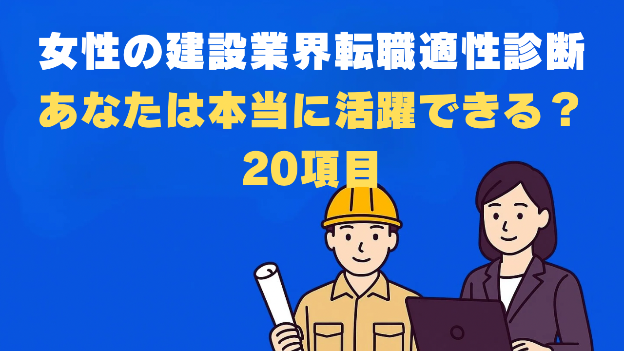 「女性でも建設業界で本当に活躍できるの?」「体力的についていけるか不安…」「セクハラとか大丈夫?」これは建設業界への転職を検討する田村さん(28歳・女性)の本音です。**建設業界の女性従業者は約17%**まで増加していますが、まだまだ男性中心の業界。この記事では、**女性が建設業界で成功できるかを20項目で診断**します。転職後に後悔しないよう、客観的に判断してください。👷♀️✨
